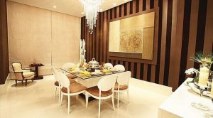 Já se o piso for claro, como o mármore branco, opte por uma cor mais escura do papel de parede, pois, ele intensifica a ideia de contraste e dando ao espaço um ar de sofisticação, sem parecer exagerado.